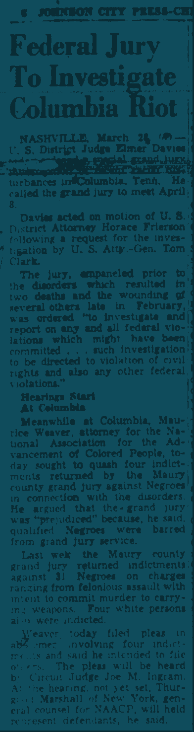 Coming Soon: A place to explore the events of The Columbia Riot of 1946.